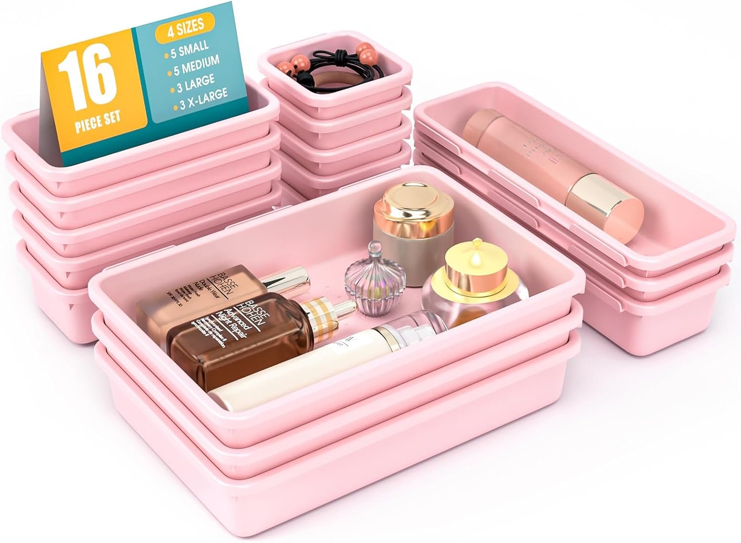 Make Everything Organized: These versatile drawer divider trays fit different size drawers and areas, suitable for all kinds of drawers, such as dresser/bathroom/kitchen/office/craft room. Great for ng cosmetics, sewing supplies, accessories, jewelry, office supplies, tools and more