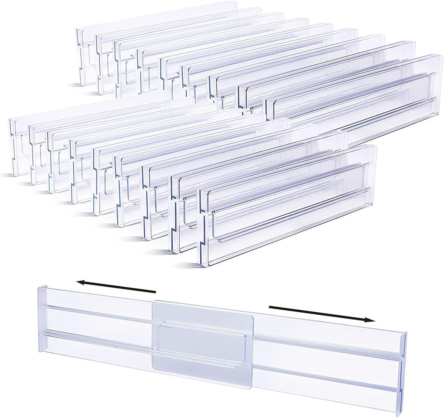 18 Pack Clear Acrylic Drawer Dividers3.5 High,11-20″ Adjustable Drawer Organizers for Clothes, Clear Plastic Separators for Dresser for Bedroom Office Kitchen Storage