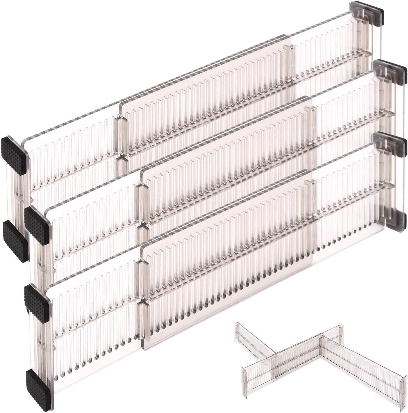 Drawer Dividers, 6 Pack Adjustable Drawer Organizers 10.8-20″, 3.15 High, Clear Expandable Dresser Organizer for Clothes Kitchen Utensils Cutlery Drawers Organizers Set(COLOR:clear)